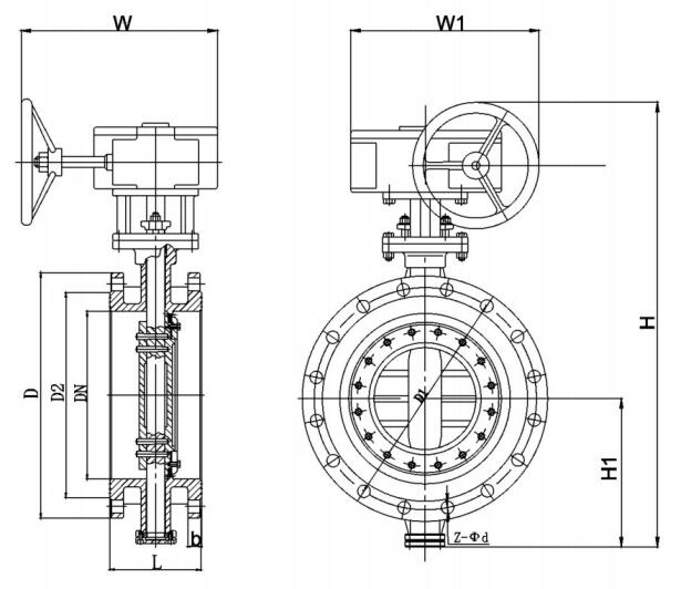 2、采用三维偏心结构,阀座与蝶板几乎无磨擦,具有越关越紧的密封功能。